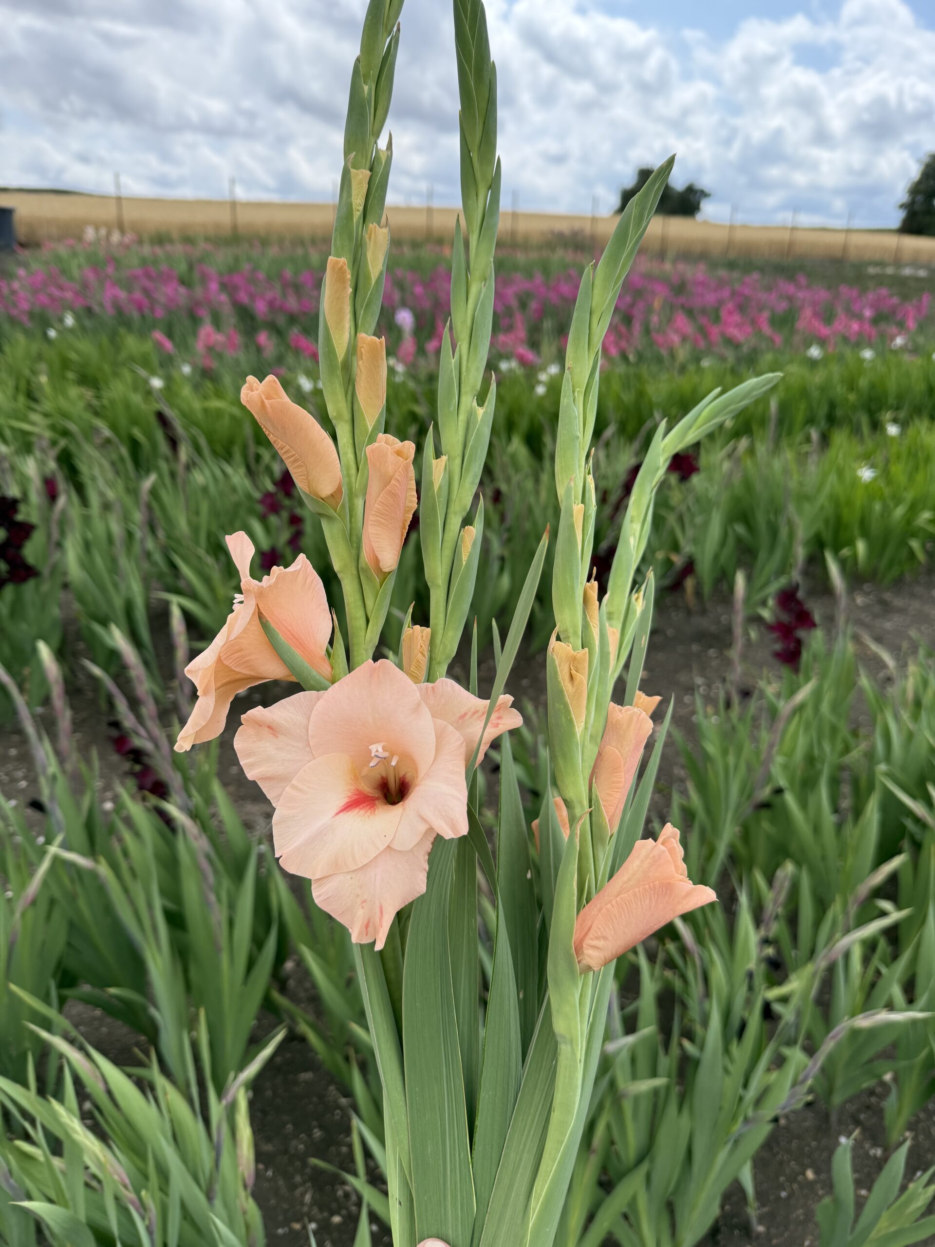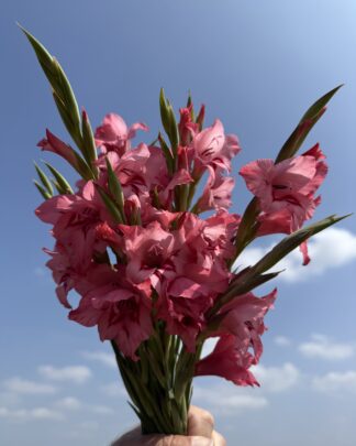 Meruňkově růžový gladiol na dlouhých stoncích, jehož nevšední krásu podtrhuje sytě červené „srdce“ v samotném středu jeho květů. Pro nás jedna z vůbec nejromantičtějších odrůd, která skvěle vyniká sama i v květinové vazbě.